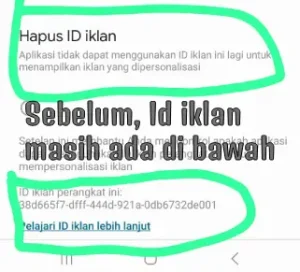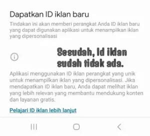 Dengan dengan begitu Iklan mengganggu tidak akan mentracking aktivitas anda, karna Id iklan sudah di hapus, Lihat gambar di bawah.